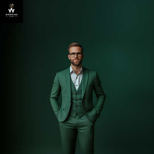 100% Merino Wool Light Green Three-Piece Suit for Men – Vintage Style Wedding, Winter, Groom & Groomsmen Suit
