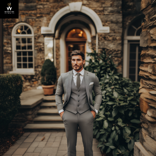 100% Grey Merino Wool Three-Piece Suit for Men – Vintage Style Wedding, Winter, Groom & Groomsmen Suit