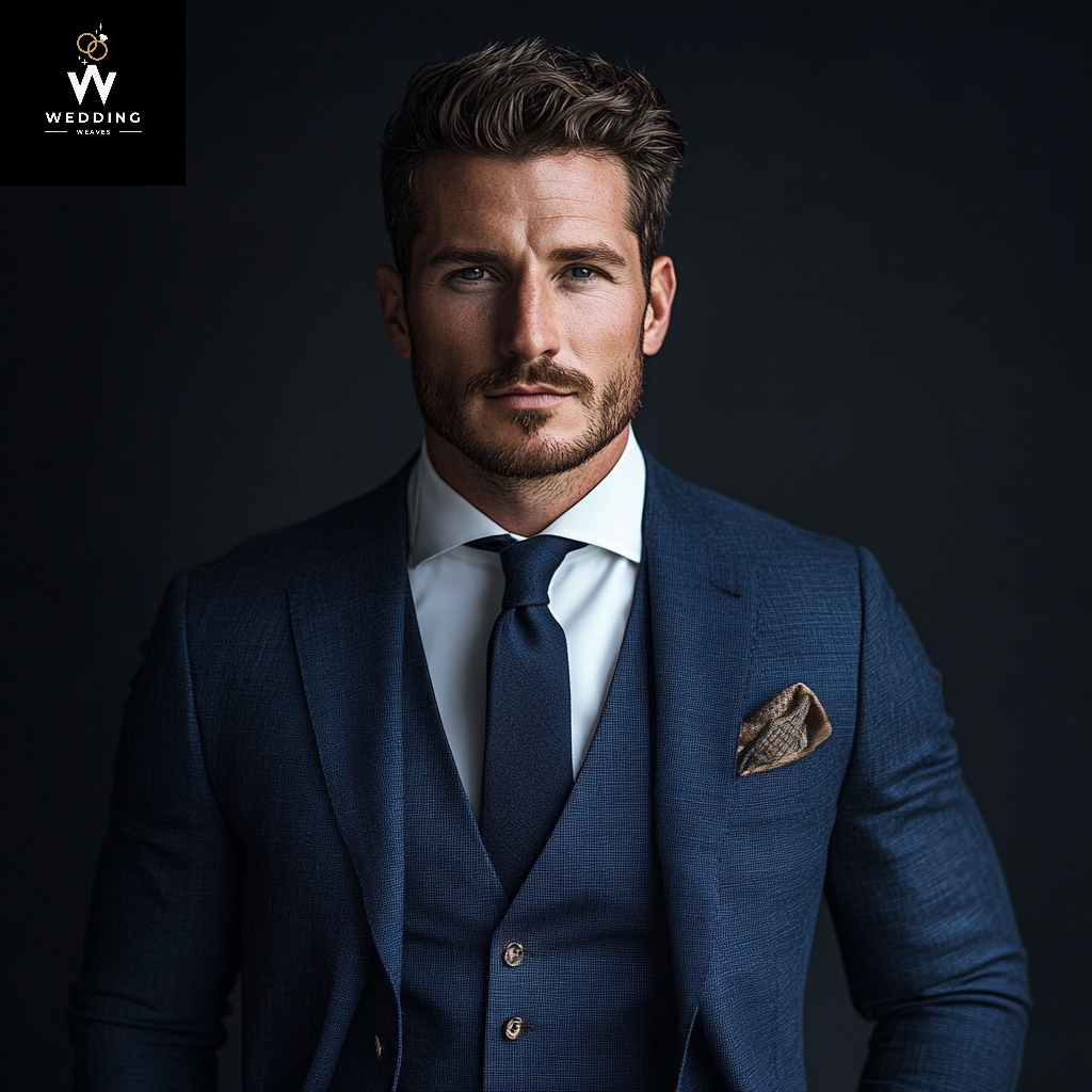 Ideal for grooms, groomsmen, and any guest who wishes to make a polished impression, this navy blue suit is a wardrobe investment that promises versatility. Not only does it elevate wedding attire, but it also transitions seamlessly to other formal events, making it a practical yet stylish addition to any man’s wardrobe.
